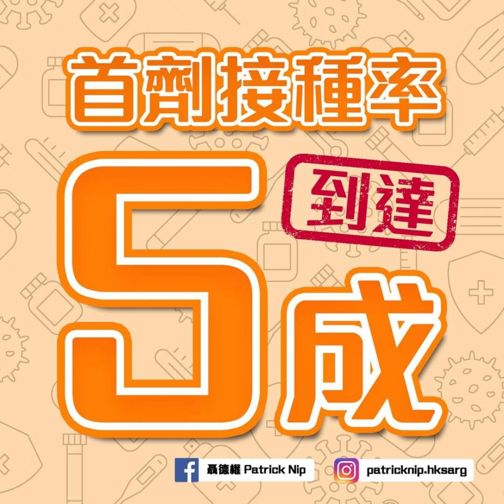 香港接種最少一針疫苗的人口達五成,即逾340萬人,公務員事務局局長聶德權今晚表示,成績令人鼓舞!