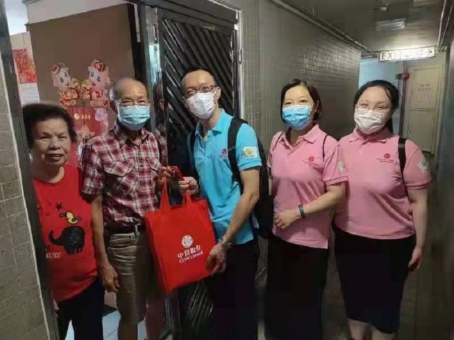 為踐行香港中國企業協會「中企關愛、同路同行」的理念,向香港廣大市民大眾傳遞在港中資企業關愛服務社區,切實履行社會責任的訊息,香港中國企業協會旗下中國太平保險集團聯同中信集團、中投系統駐港機構和農業銀行香港分行等4家在港中資機構今日(7日)在荃灣和葵青區舉行「中企關愛溫暖進社區」活動,向區內長者及困難戶派發福袋,以表達關愛送暖。