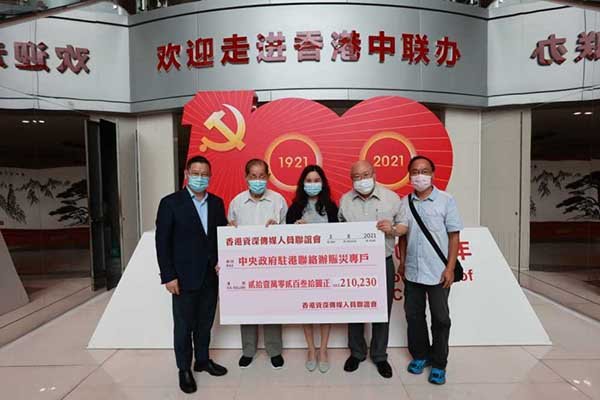 從7月20日河南省鄭州市遭遇特大暴雨至8月初,香港社會各界通過各種方式為遠在千里之外的“河南鄉親”加油打氣,紛紛慷慨解囊,前往香港中聯辦大樓遞交捐贈支票的團體和市民更是絡繹不絕。