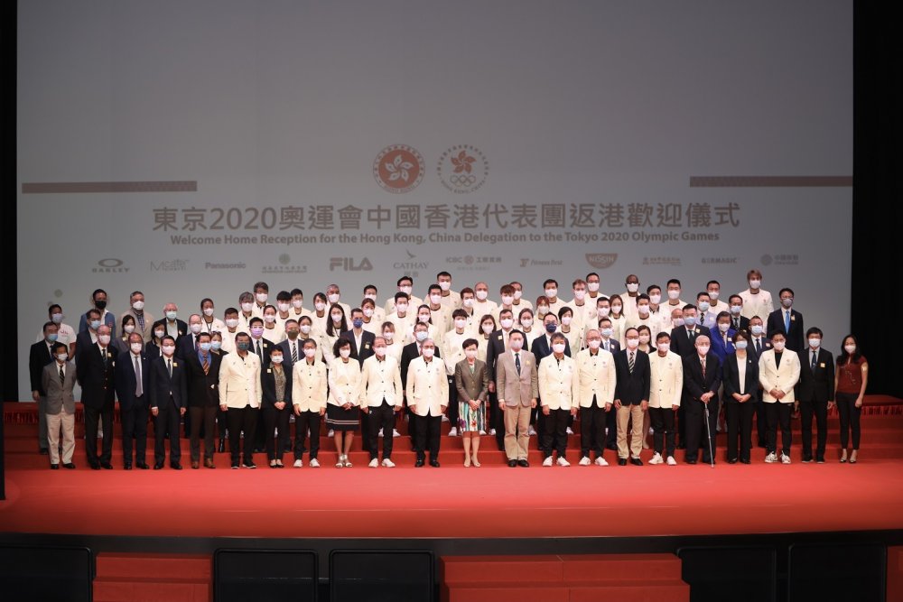 東京奧運香港隊運動員及其他代表團成員今早乘坐開篷巴士巡遊,此後出席於西九龍戲曲中心舉行的歡迎儀式。行政長官林鄭月娥出席儀式致辭時表示,今屆奧運港隊運動員表現令人振奮,展現出「打不死的香港精神」,亦大大提升香港運動員在國際體壇的地位。