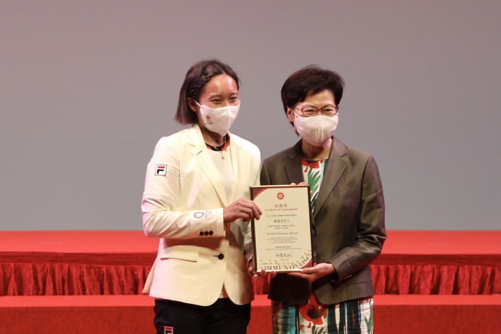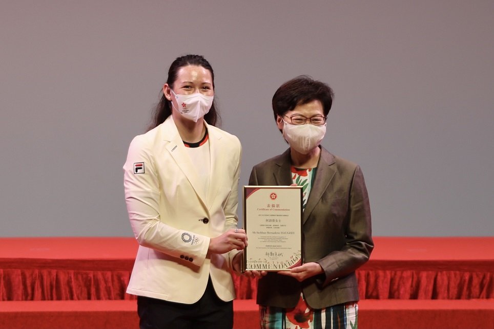 林鄭月娥致辭指,運動員們咬緊牙關,迎難而上,最終不負眾望,在奧運展示非凡實力,取得香港歷史上最好成績,不單摘得一金兩銀三銅共六面獎牌,亦在多個項目躋身八強。有運動員打破香港紀錄,亦創出自身最佳成績,令人振奮,大大提升香港運動員在國際體壇的地位。