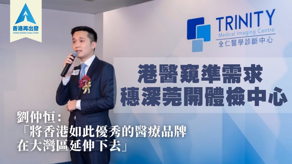「大灣區登記人口高達7,000萬,數量是香港10倍,若加上流動人口更達1.5億,單是廣東省去年的醫療健康年銷售總額達2,000億元人民幣。」放射科專科醫生、香港再出發大聯盟共同發起人劉仲恒早已洞悉先機,近年積極將其創立、主打醫學影像診斷及體檢服務的全仁醫務中心打進內地城市,目標明年底可於廣東省開設首間中心,並聘請約100名職員,當中醫護主要來自本港,行政人員則從內地招聘。他認為,大灣區融合的「美麗之處」在於各地各有所長,料互相取長補短發揮各自優勢,大灣區居民會是最大得益者。