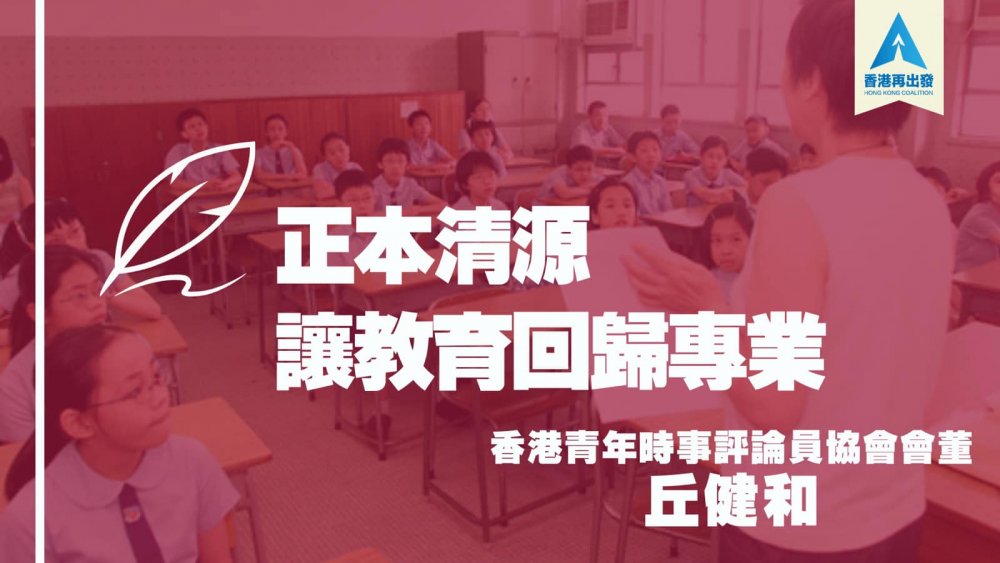 香港青年時事評論員協會會董、香港再出發大聯盟共同發起人丘健和近日在《明報》以「正本清源 讓教育回歸專業」為題撰文,全文內容如下:
