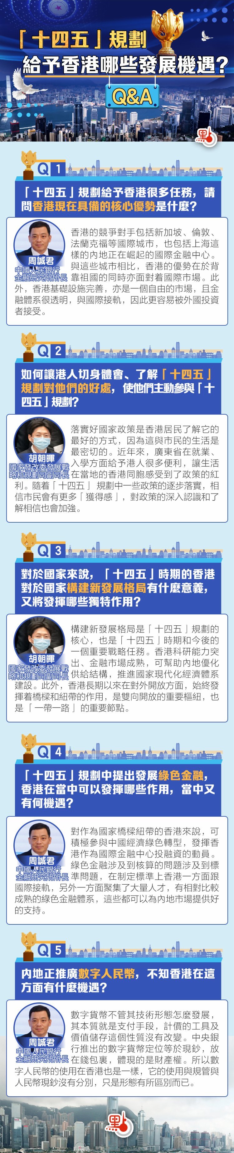 國家「十四五」規劃宣講團本周來港,通過多場活動向各界宣講「十四五」規劃綱要。宣講團成員昨日(24日)走進香港大公文匯傳媒集團,圍繞「把握國家『十四五』機遇 香港更好融入國家發展大局」主題,會見媒體並回答記者提問。「十四五」規劃給予香港哪些發展機遇?快來睇下!