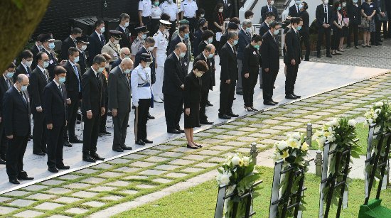 今日(3日)是中國人民抗日戰爭勝利紀念日,本港今早在香港大會堂紀念花園舉行紀念儀式,行政長官林鄭月娥與出席人士於早上近8時,陸續到場。