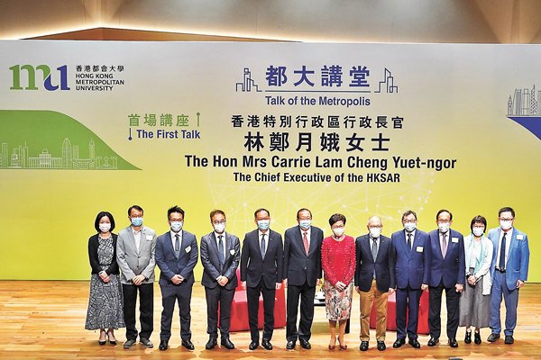 原香港公開大學今年9月正式改名為香港都會大學,校方特別於昨日在校內舉行首場「都大講堂」,邀請林鄭月娥為主講嘉賓,以「『十四五』規劃香港融入國家發展大局」為題,與數百名出席者分享。