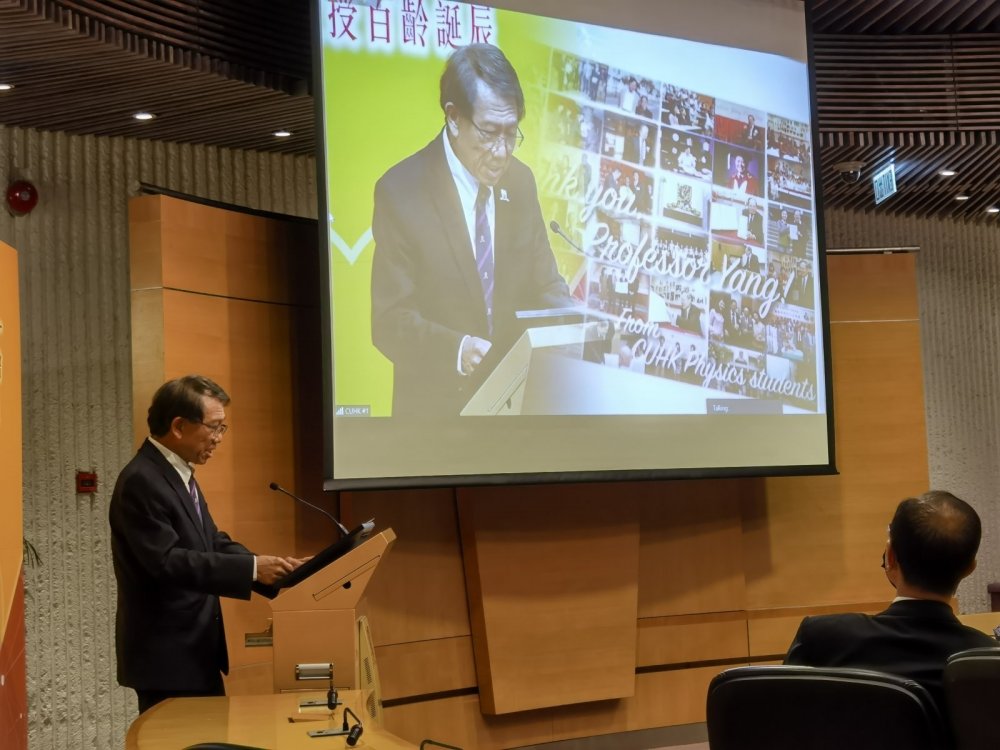 香港中文大學校長段崇智致辭時表示,港中大與楊振寧先生有很深的淵源,對大學的學術發展做出卓越貢獻。楊振寧先生1982年出任港中大物理系榮譽講座教授,1986年至今擔任特設的博文講座教授,1997年獲中大頒授榮譽理學博士學位,1999年慷慨捐贈其論文、手稿及諾貝爾獎章等珍貴物品和資料予中大,促成楊振寧學術資料館的成立。