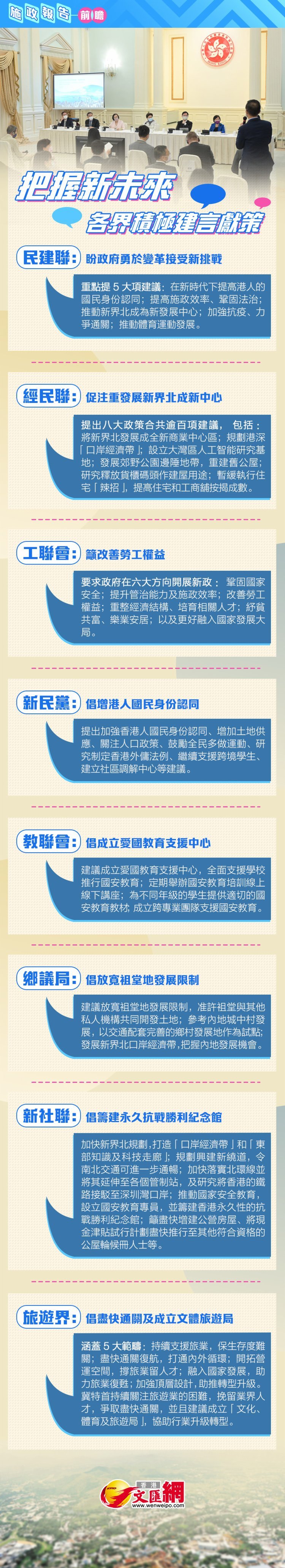 【施政報告前瞻】把握新未來 各界積極建言獻策