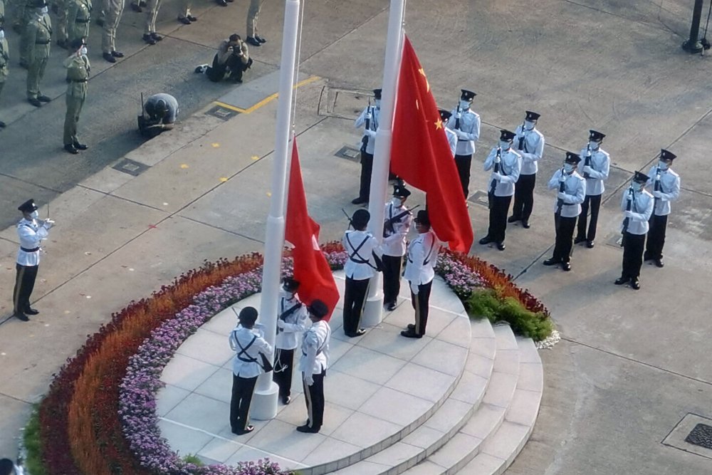 儀式中,香港警察樂隊奏國歌,林鄭月娥帶領一眾政府高層官員,肅立跟唱國歌。懸掛國旗和區旗的飛行服務隊直升機從維港上空飛過,香港紀律部隊在空中和海上敬禮。