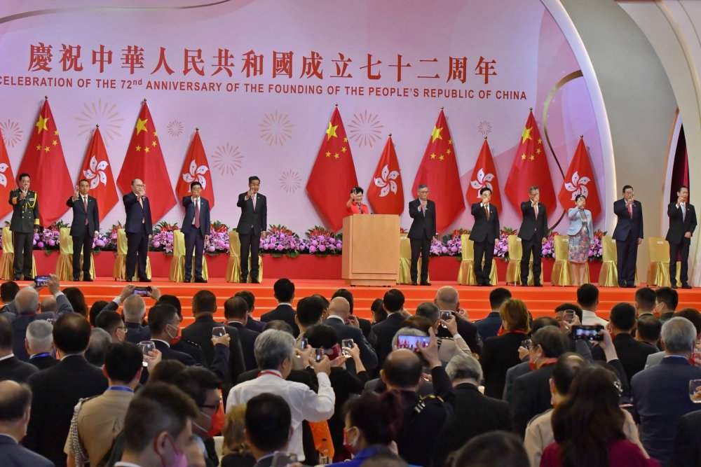 10月1日,香港特區政府舉行慶祝中華人民共和國成立72周年升旗儀式和國慶酒會,香港特別行政區行政長官林鄭月娥和政府官員及社會各界人士出席。