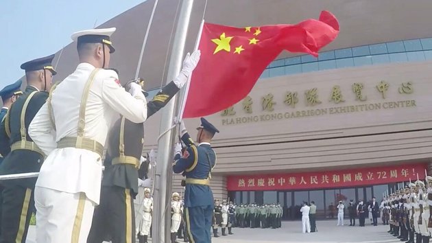 解放軍部隊昨晚(1日)在微博發布影片,來自香港漢華中學、培僑中學、香島中學等學校的百餘名師生以及市民代表,昨日上午走進新建成的駐港部隊展覽中心參加升國旗儀式,並參觀「夢起東方」主題展覽,近距離接受愛國主義和國防教育,用自己的方式慶祝中華人民共和國成立72周年。