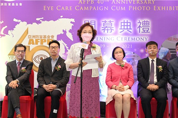 亞洲防盲基金會今日(10日)舉行「慶祝亞洲防盲基金會成立40周年-護眼運動暨圖片展覽」開幕典禮,邀請到食物及衛生局局長陳肇始、中央人民政府駐香港特別行政區聯絡辦公室協調部部長朱文、會長陳梁悅明、名譽贊助人孫國華、副會長(醫務)周伯展、副會長(行政)顏志永和醫務總監譚智勇擔任主禮嘉賓。