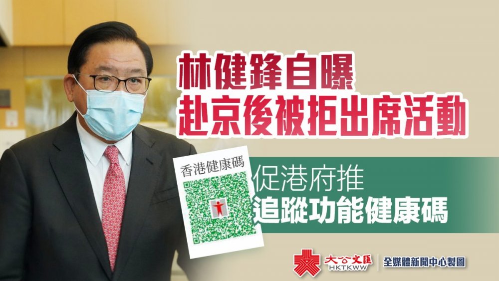 林健鋒說,內地防疫工作相當嚴謹,他明白、了解及支持有關安排。北京拒絕其入境申請,反映內地把關力度快而準,非「拖幾日先處理」。他強調,港人應了解內地不接受「與病毒共存」的抗疫方針,促港府推出具追蹤功能的健康碼程式。若不願被追蹤的港人,有選擇可不到內地。