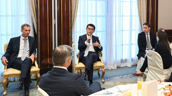 商務及經濟發展局局長邱騰華今日(19日)出席歐洲聯盟駐港澳辦事處商務早餐會,向歐盟各國駐港貿易專員和多個歐洲在港商會代表闡述香港營商優勢,並介紹《行政長官2021年施政報告》中與商貿有關措施。