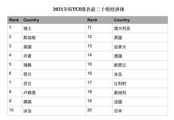 在國家人才競爭力方面,瑞士以82.09分繼續高居榜首,新加坡以79.38分排名第二,美國以78.81分排第三,中國排名37。