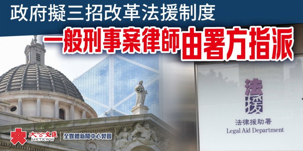 據傳媒引述消息報道,三大方向改革包括針對一般刑事案件,法援署不准許法援申請人自選律師代表,改由署方指派;在民事案件方面,大律師每年整體可接下涉法援的案件,由最多20宗減至15宗,事務律師則由35宗減至30宗,當中涉司法覆核的案件,大律師每年可接下最多3宗相關案件,事務律師則最多5宗;以及公開更多涉法援案件的數據資料。