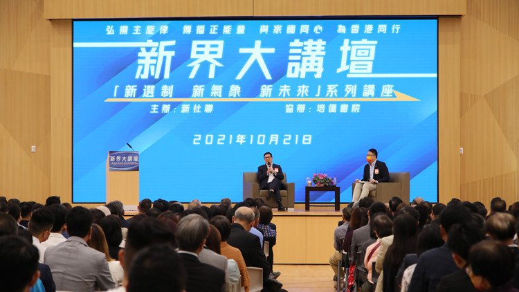 新界社團聯會今日(21日)舉辦新界大講壇,近500名社會各界精英出席以「新選制 新氣象 新未來」為主題的講壇。保安局局長鄧炳強為講壇開局作首場報告,中聯辦新界工作部部長李薊貽為講壇致開幕詞。
