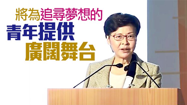 林鄭說,政府在新一份《施政報告》提出「北部都會區」發展策略,強調是為年輕一代建設,加上國家對香港的支持,香港將迎來新局面,也為有意追尋夢想的青年提供一個廣闊的舞台。