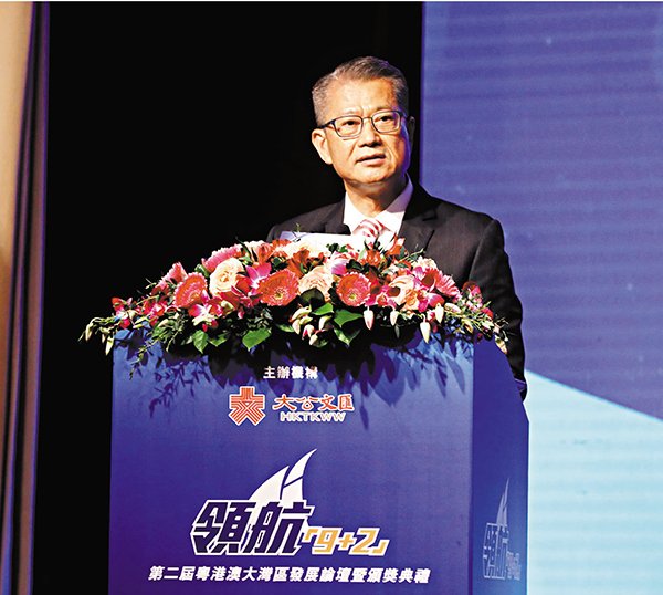 香港特區政府財政司司長陳茂波昨日(5日)在「領航『9+2』·第二屆粵港澳大灣區發展論壇」上發表主題演講,探討香港在粵港澳大灣區的發展機遇。他指出,今次論壇的主題「領航9+2」正正道出大灣區發展的重要性。在國家發展進入新階段,朝着全面建成社會主義現代化強國這第二個百年目標邁進的關鍵時期,大灣區肩負起領航的重任,為國家的經濟發展和對外開放發揮重要的支撐引領作用。中央一直支持粵港澳三地政府推動三地經濟運行的規則銜接、機制對接,以及政策創新,力求區內各類生產要素的便捷流動,以進一步提升大灣區市場的一體化水平。粵港澳成功合作發展,既可示範如何把差異轉化成優勢,並帶動周邊地區的發展,其成功的經驗更可輻射全國。