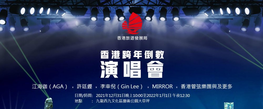 旅發局將於12月31日晚10時,首次舉辦跨年倒數演唱會,會在西九龍文化區藝術公園舉行。現場可容納3000名觀眾,並邀請到一眾年輕人氣歌手及組合,同時會於網上直播,預料耗資約1700萬元。