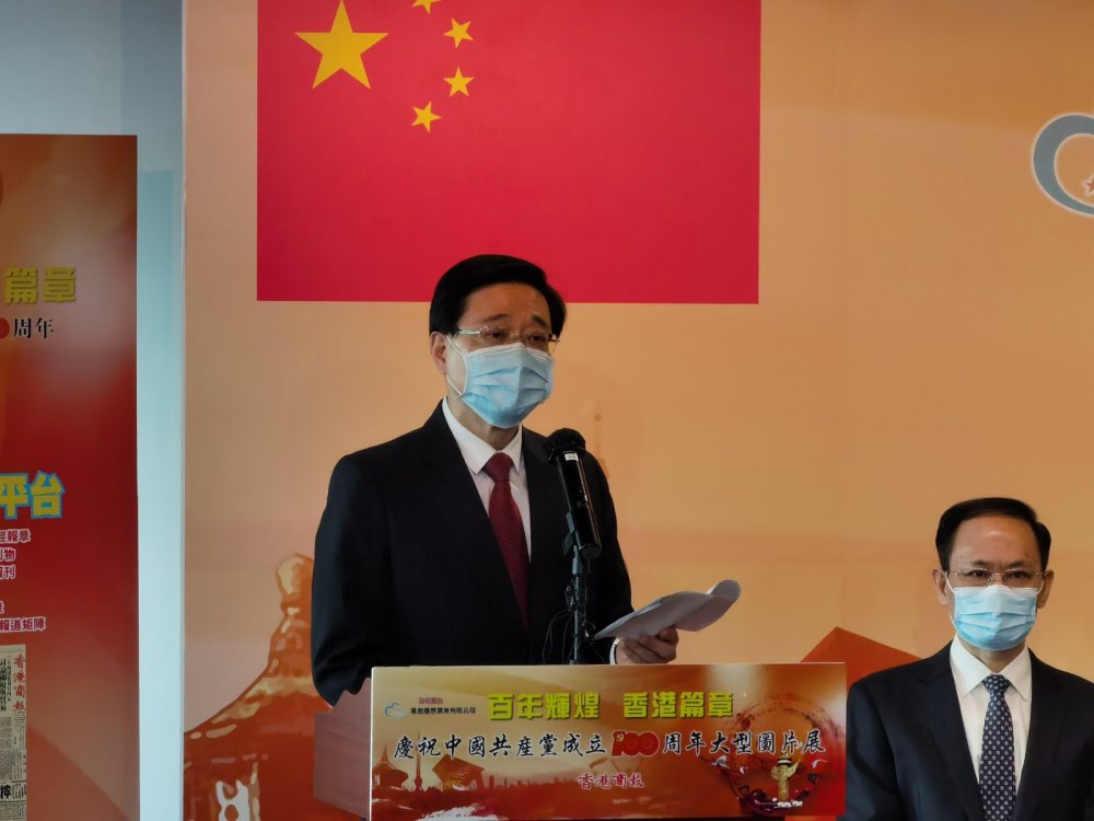 「百年輝煌 香港篇章——慶祝中國共產黨成立100周年大型圖片展」今日(12日)開幕。政務司司長李家超出席儀式時表示,今年是中國共產黨成立一百周年的重大日子,過去幾個月,香港社會各界舉辦了不少慶祝中國共產黨一百周年華誕活動。在中國共產黨帶領下,國家發展成為世界第二大經濟體,並在科技、探索太空領域等方面展現非凡實力。