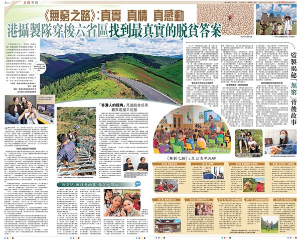 在四川涼山懸崖攀「天梯」、溜着鋼索橫渡湍急的怒江、置身大西北的戈壁沙漠見證人工建造的綠洲……隨着本月6日,廣西乍洞村扶貧幹部的「洋助理」的故事講述完畢,由TVB拍攝的扶貧紀錄片《無窮之路》在內地播出也畫上句號。5個人的團隊,花了3個月的時間踏上「無窮之路」,用鏡頭把一個個真實的故事、一個個真實的村落變化向觀眾娓娓道來,引發了內地觀眾的共情,並在網絡上引發廣泛討論,社交平台評論裏頻頻見到「什麼時候出續集」的追問。