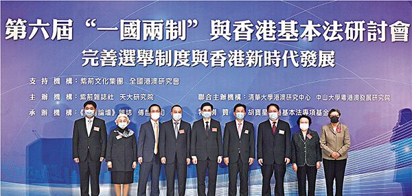 在紫荊文化集團和全國港澳研究會支持下,紫荊雜誌社與天大研究院主辦了「完善選舉制度與香港新時代發展——第六屆『一國兩制』與香港基本法研討會」,《紫荊論壇》雜誌、傅哲有限公司承辦,清華大學港澳研究中心、新活力青年智庫、中山大學粵港澳發展研究院聯合主辦。