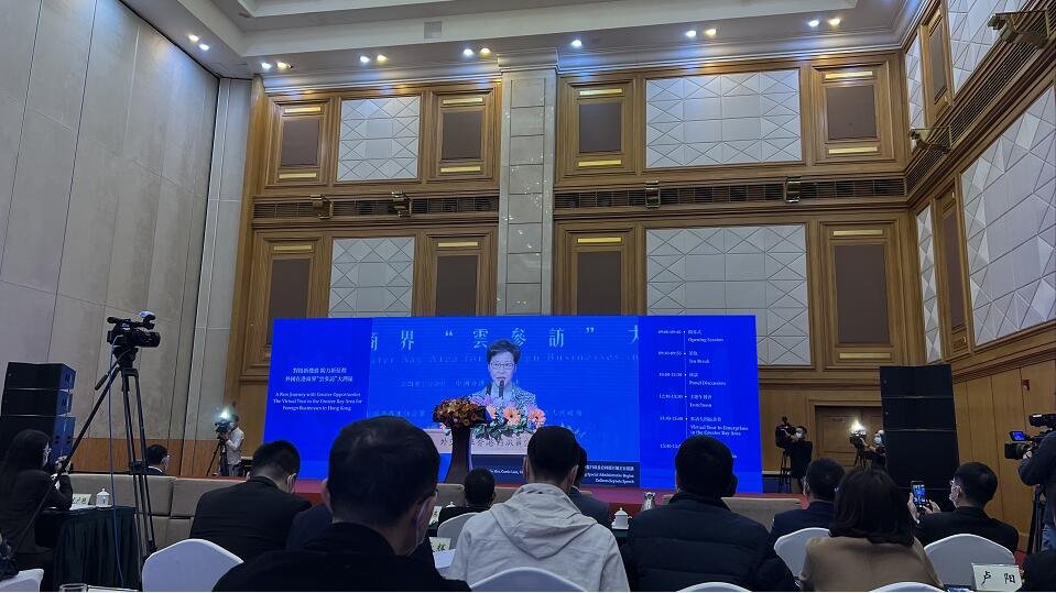 林鄭月娥表示,過去兩年,香港國安法實施和香港選舉制度的完善,推動香港走出了政治泥淖,為香港發揮自身獨特優勢提供了廣闊空間。大灣區的建設同香港的發展相得益彰,香港的基礎研究和高等教育同內地製造業高度互補,深港科技創新合作區為大灣區國際科創中心的建設安上有力引擎,香港作為國際金融中心為外資進入大灣區和內地提供絕佳平台。特區政府將不斷推出新舉措,將香港打造成為人民幣離岸結算中心,持續鞏固提升香港的國際航空樞紐地位。特區政府正同內地有關部門一道共同努力,推動恢復同內地的免檢疫通關,並已取得良好進展。