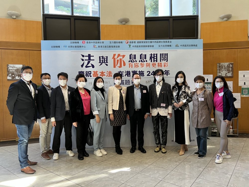 「『法』與你息息相關 有你參與更精彩」慶祝基本法在港實施24周年活動,今日(28日)下午在香港西營盤高街社區會堂主辦。活動由香港中西區婦女會主辦,該會主席趙華娟在致辭時,勉勵大家真誠擁護基本法,團結一致,愛國愛港,努力培養年青新一代,在12月19日踴躍投票選出心儀的代議士進入立法會。