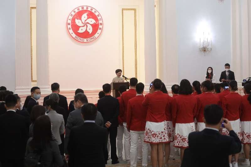 行政長官林鄭月娥傍晚在禮賓府接待運動員,並安排他們參觀禮賓府。林鄭致辭時表示,自香港回歸以來每次奧運過後,都會有國家隊代表團訪港,反映中央對香港的關愛,以及國家體育總局對香港體育發展的支持。故代表香港市民和特區政府歡迎代表團成員到來。