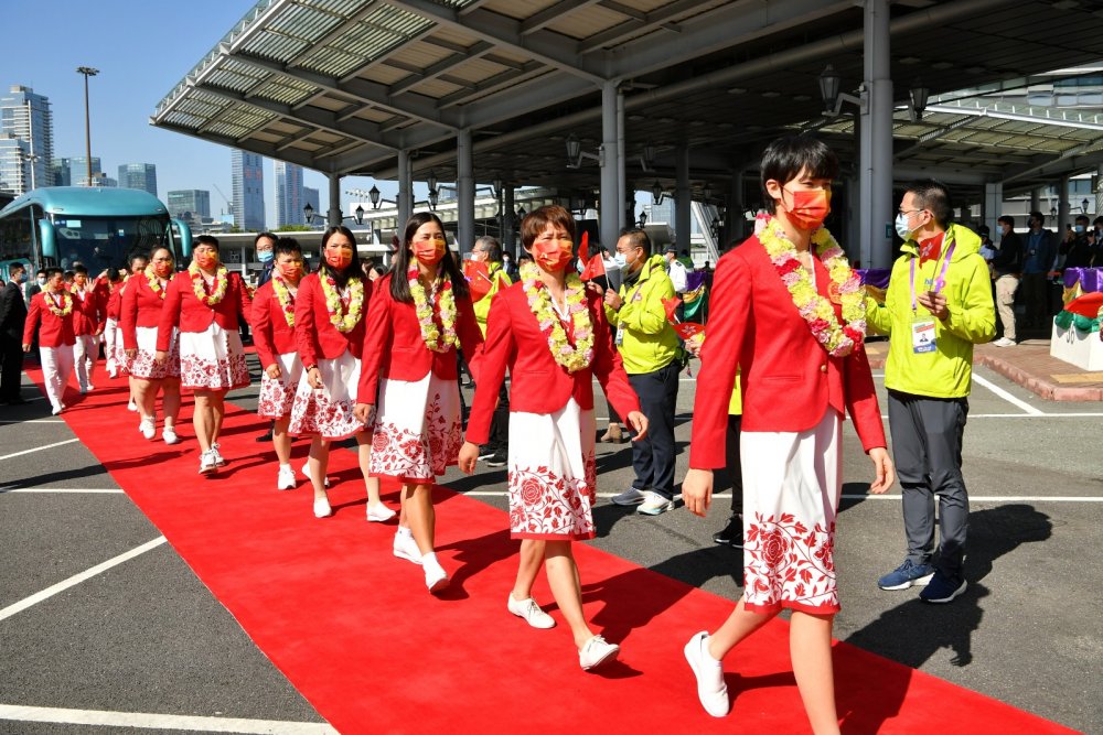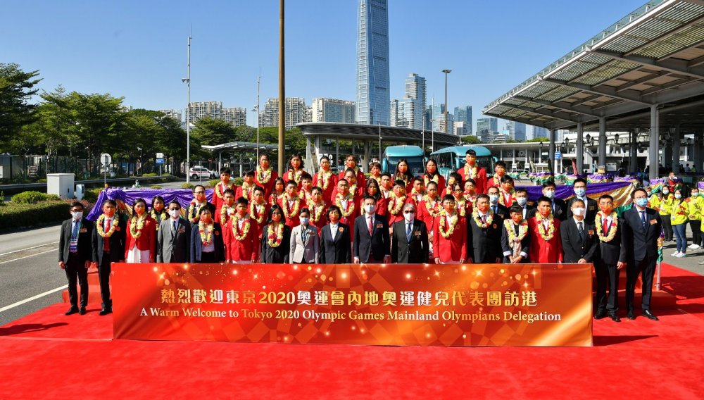 今次訪港的代表團共29名運動員,包括馬龍、許昕、孫一文、鍾天使等28名金牌得主,以及「百米飛人」蘇炳添,同行還有3名教練。在中午的歡迎儀式上,民政事務局局長徐英偉、康樂及文化事務署署長劉明光、中聯辦公室宣傳文體部副部長鄭琳、中國香港體育協會暨奧林匹克委員會會長霍震霆及其他嘉賓在場迎接,運動員們乘坐旅遊巴士抵埗時,他們與代表團成員一一握手。眾人在口岸拍攝大合照後,代表團乘車前往下榻酒店。