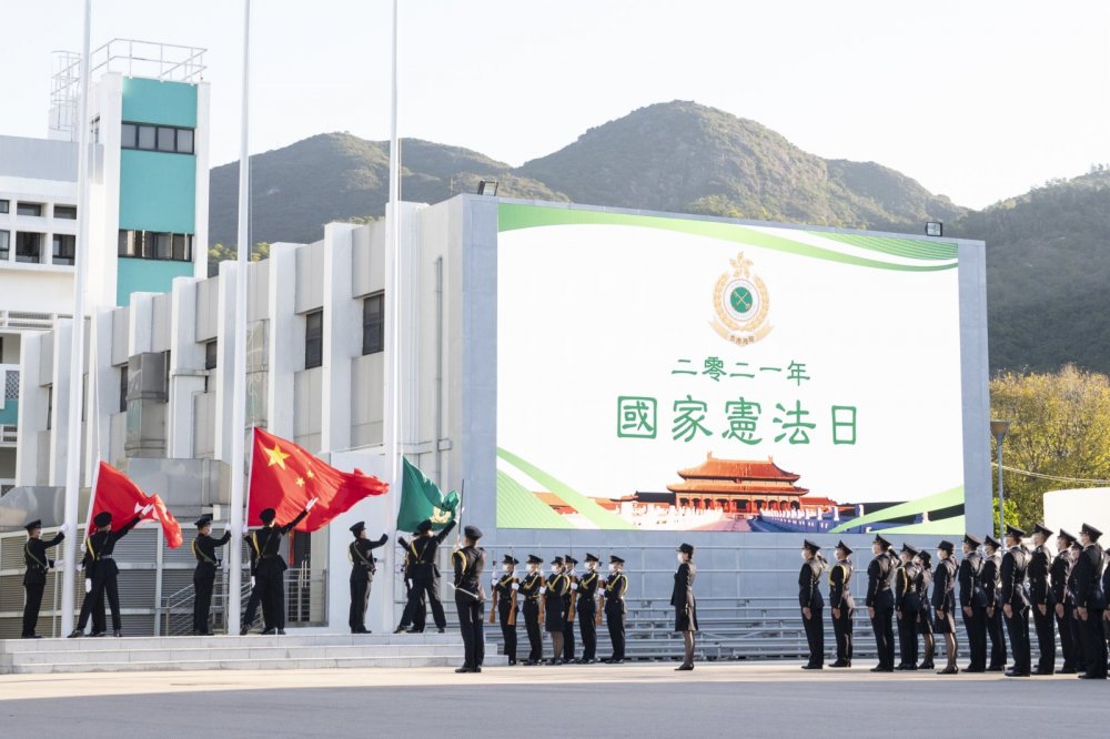 今日(4日)是國家憲法日。保安局局長鄧炳強發表網誌,指轄下六個紀律部隊配合「國家憲法日」,早上分別舉行升旗儀式,相關部門首長均有出席觀禮。