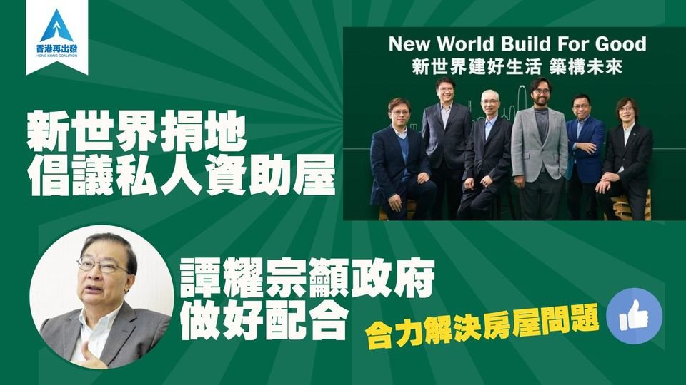 新世界發展成立的非牟利房社企「新世界建好生活」,倡議發展全港首個非牟利的私人資助房屋項目,以市價約五折至六折出售,而新世界亦將捐出一幅位於新界西的地皮作試驗計劃。全國人大常委譚耀宗回應時,認為這是好事,呼籲政府做好配合,盡快審批。