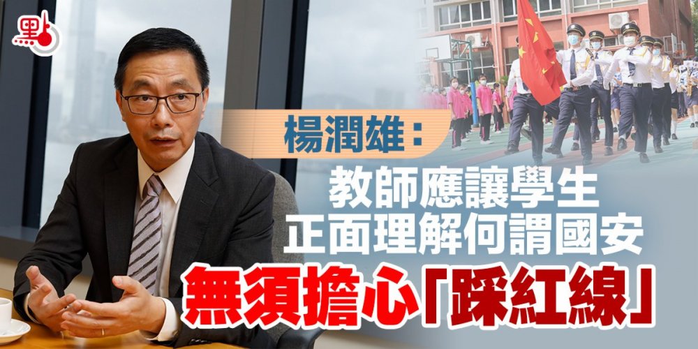 香港國安法頒布實施近一年半,教育局正逐步協助中小學推廣國民教育、國家安全教育。教育局局長楊潤雄今日(8日)在電視節目中表示,老師有責任讓學生明白何謂國家安全,並應培養學生肩負起維護國家安全責任。他又指,教師只要正面教導學生,就不需要擔心誤踩所謂的「國安紅線」。