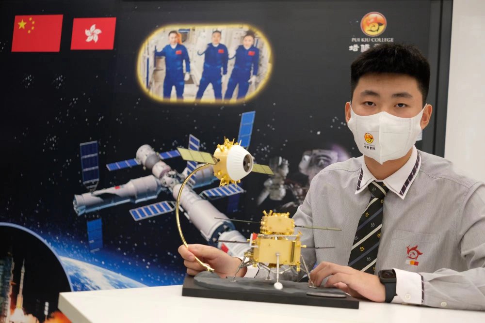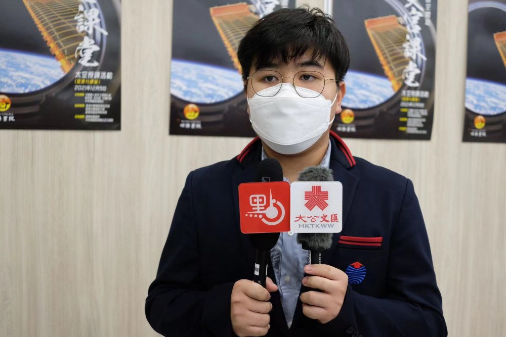 香港耀中國際學校11年級學生張逸希曾於9月參加「時代精神耀香江」之仰望星空話天宮活動,對航天熱情不減的他,今日再來參加「天宮課堂」活動,他說上次與太空人對話,令同學們了解到航天員背後的心路歷程,而今次的太空授課,令同學們學習到很多太空知識,趣味滿滿。他還說,航天員們為了國家的科技進步,離開自己的家人,歷經很多專業訓練和考驗,覺得他們十分偉大,自己充滿敬佩之情,未來希望可以從事航天相關行業,實現航天夢。