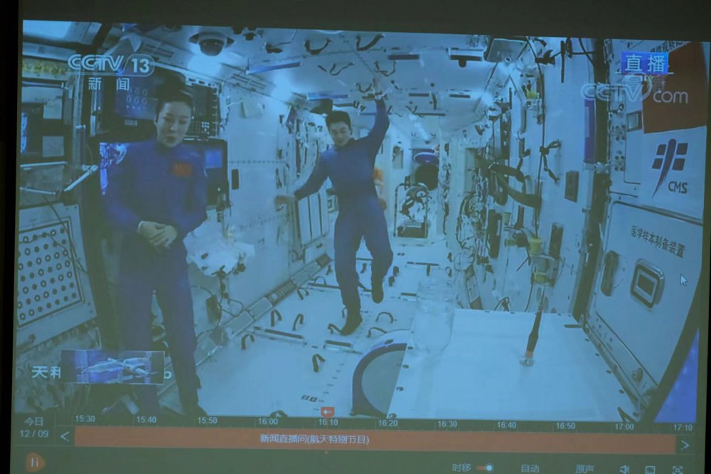 培僑書院中四學生門睿涵今日向航天員提問,天上的生活用水是否可以循環使用,王亞平回覆道,「航天員飲用的水是經過處理的再生水,目前空間站有一整套水再生處理系統,能夠滿足艙內生活用水的頻繁使用,且再生水和普通水喝起來沒有什麼區別。」課後,門睿涵表示,他對王亞平的回覆非常滿意,而且航天員針對自己的問題還有一些擴展內容,之後對於水的實驗亦是從自己的問題開始,他感到非常榮幸可以成為航天員課堂的一部分。