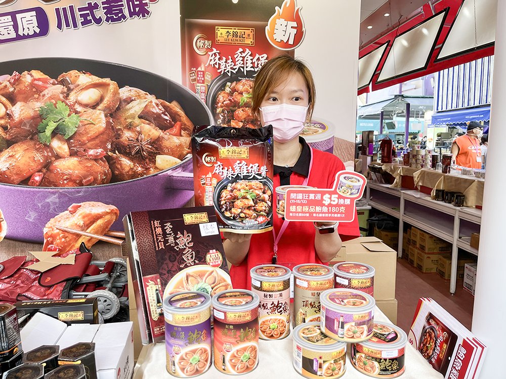 李錦記發言人介紹,70元可購買秘製麻辣雞煲醬與蠔王極品鮑魚,購物滿600元後能再以2元加購火鍋車仔袋;另一位負責人對今年工展會感樂觀,保守預計較2018年有雙位數銷售增幅。
