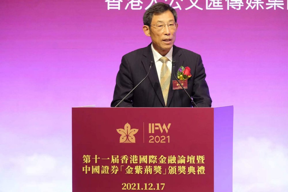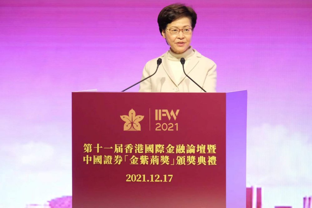 金融界一年一度的盛事、「2021第十一屆香港國際金融論壇暨中國證券『金紫荊獎』」頒獎典禮於今日(17日)下午在香港會議展覽中心舉行。香港特區行政長官林鄭月娥、外交部駐港公署副特派員潘雲東、香港特區政府財經事務及庫務局局長許正宇、全國政協常委吳良好等約250位嘉賓出席今次活動。行政長官林鄭月娥,全國政協委員、香港大公文匯傳媒集團董事長姜在忠等發表致辭。
