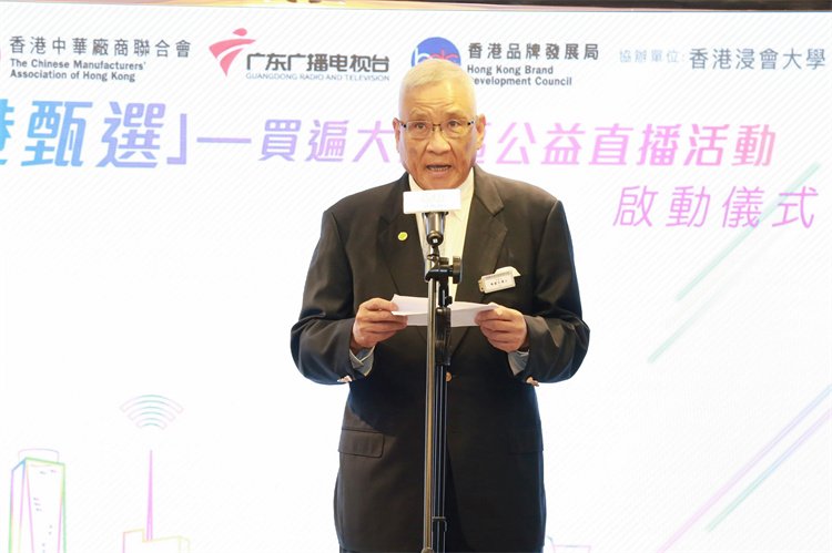 出席今天啟動儀式的嘉賓尚包括廠商會常務副會長兼品牌局副主席盧金榮,副會長黃家和,副會長兼品牌局副主席陳家偉,品牌局副主席吳清煥,黃偉鴻及沈運龍,廣東廣播電視台副總編輯施燕峰,協辦單位代表香港浸會大學協理副校長(內地事務)、傳理與影視學院院長黃煜教授,以及一眾參與首場帶貨活動的品牌代表。(記者呂明霞)
