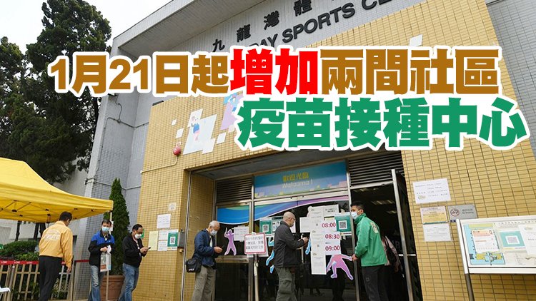 由1月21日起,政府會增加兩間社區疫苗接種中心,即教育局九龍塘教育服務中心和九龍灣體育館,讓市民接種復必泰疫苗。市民可由1月18日上午9時開始預約名額。