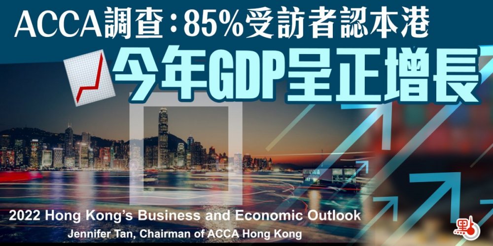 ACCA(特許公認會計師公會)香港分會近月訪問170位會員,涵蓋來自不同行業、公司規模及年齡層的財務及會計專業人士,以了解他們對2022年香港經濟前景及營商環境的預測及看法,今日(13日)舉行線上簡報會公布調查結果,共85%受訪者認為今年本地生產總值(GDP)出現正增長,當中幅度介乎0-1.9%、2-3.9%及高於4%分別為44%、35%及6%,反映受訪者認為香港經濟最壞時候已過,對前景看法恢復正面。