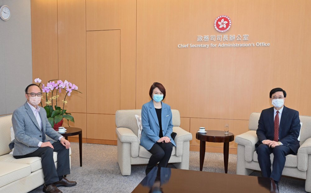政務司司長李家超今日(17日)下午與立法會內務委員會主席李慧琼及副主席馬逢國進行今屆立法會的首次會面,之後亦會每周進行定期會面。
