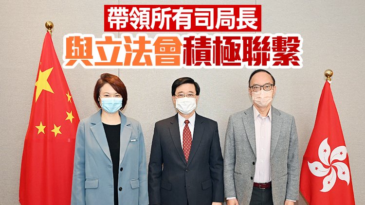 李家超表示,政府重視行政立法關係,將積極配合立法會履職,包括審議法案、撥款、質詢、議案辯論等。他會帶領所有司局長與立法會積極聯繫,並會在制訂政策時透過不同途徑盡早與議員交流意見。