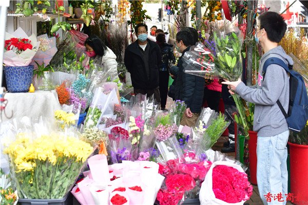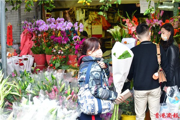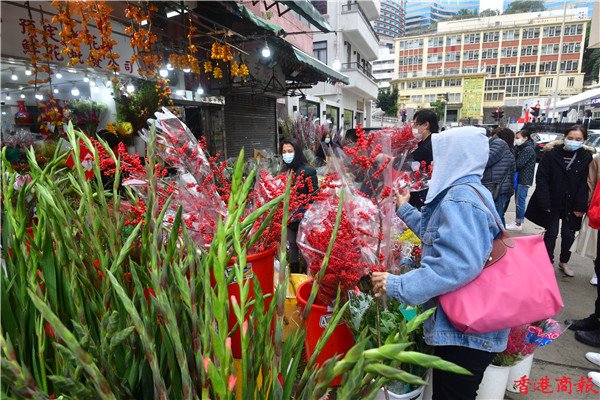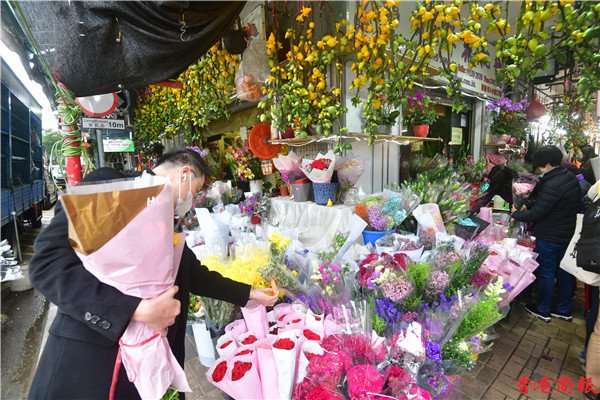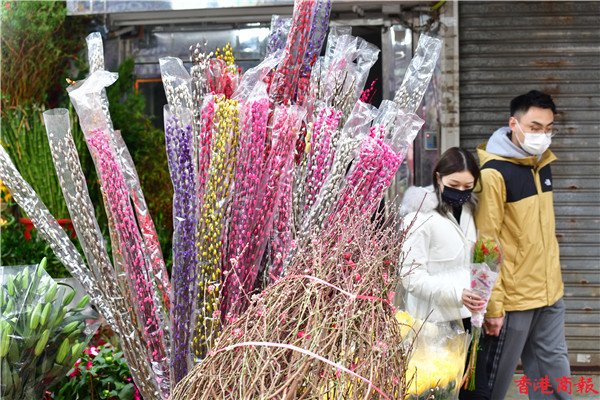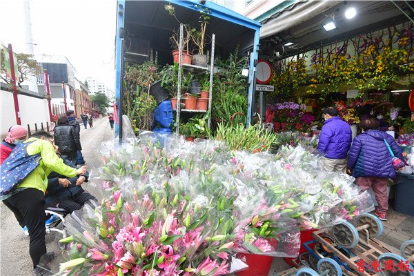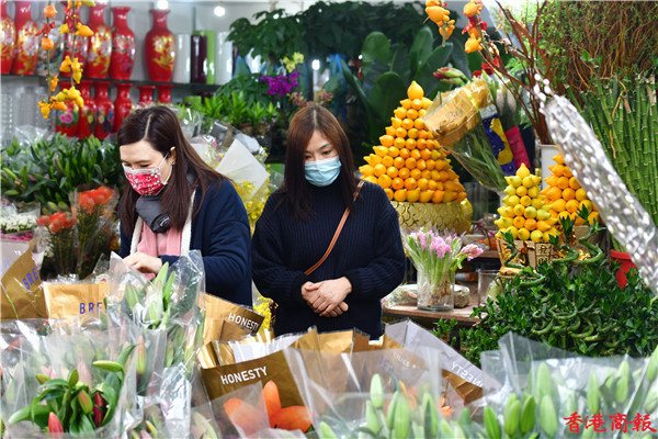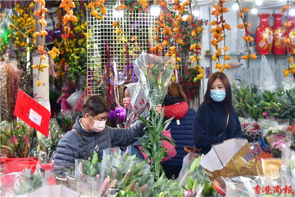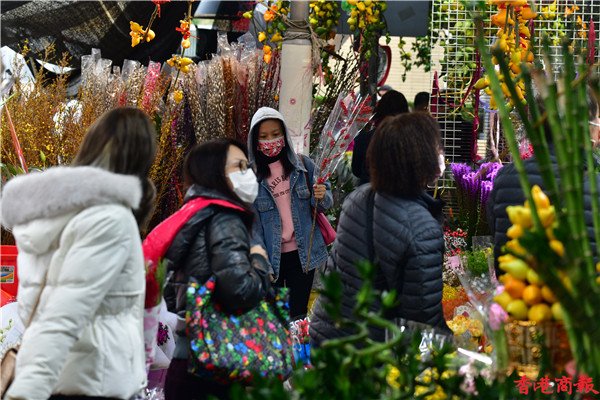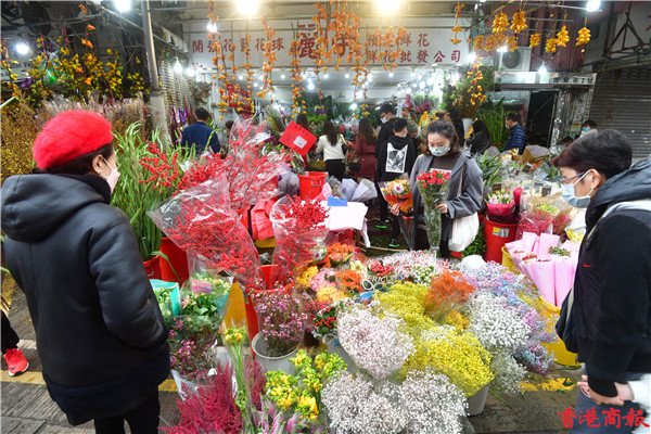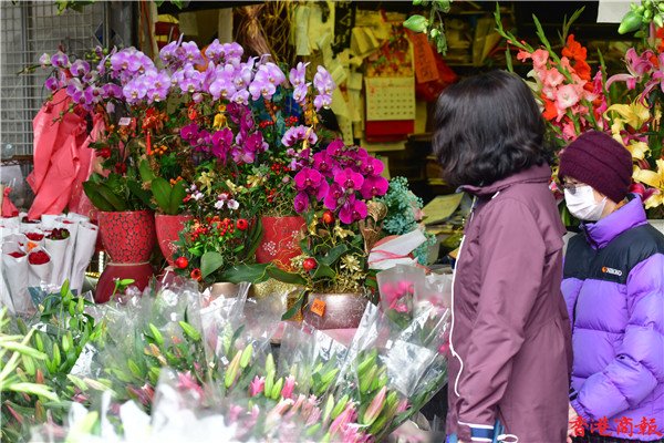 年初一僅得三四檔花檔營業,有市民專程到花檔揀選鮮艷燦爛的桃花、菊花、五代同堂、金玉滿堂等,寓意新一年充滿生氣活力,希望新春如意。(崔俊良攝)