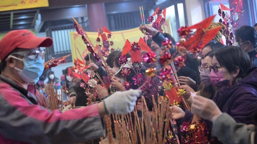 今日大年初三「赤口」,不少市民按傳統不拜年,改到沙田車公廟祈福,廟內今早人流不絕,香火鼎盛。華人廟宇委員會指,由今早8時至中午12時,共有6,414人次入廟。