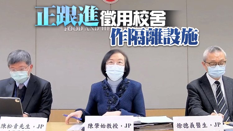 陳肇始表示,當局正跟進徵用校舍作隔離設施,行政長官已責成發展局覓地,在醫院或現有隔離設施附近,增建社區隔離設施。