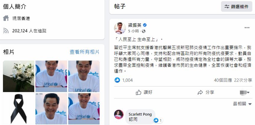 香港第五波新冠肺炎疫情牽動着習近平總書記的心。近日,習近平總書記就支援香港抗擊第五波新冠肺炎疫情工作作出重要指示,並委託韓正副總理向林鄭月娥行政長官轉達對香港疫情的高度關注和對香港市民的親切關懷,強調香港特區政府要切實負起主體責任,把盡快穩控疫情作為當前壓倒一切的任務,動員一切可以動員的力量和資源,採取一切必要的措施,確保香港市民的生命安全和身體健康,確保香港社會大局穩定。中央各有關部門和地方要全力支持和幫助香港特區政府做好防疫抗疫工作。全國政協副主席梁振英在個人社交平台發文,呼籲大家同心同德,支持和配合特區政府的所有防疫抗疫要求。將防控疫情定為全社會的頭等大事。