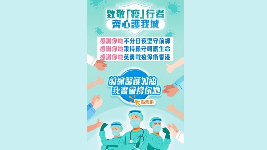 巿民如想向醫護表達謝意及支持,可到以下網址及點擊。圖:守護香港大聯盟