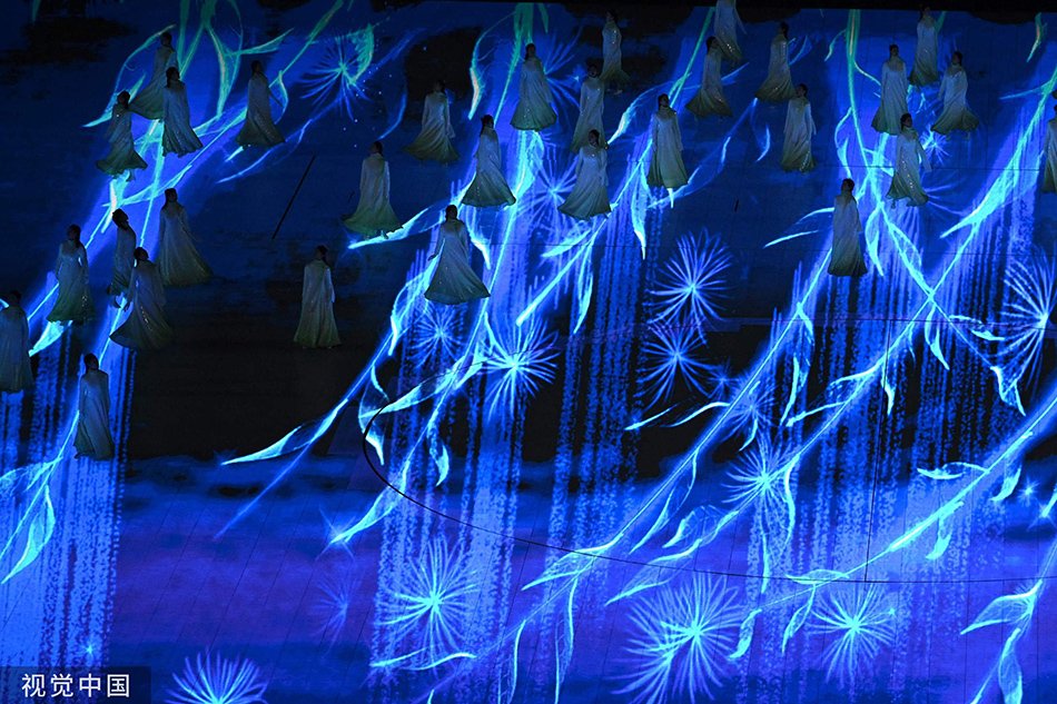「紀念時刻」是奧運會閉幕式上的固定命題環節。本屆冬奧會選擇了「折柳」這一獨具東方文化韻味的送別方式。365位來自各行各業、不同年齡的普通人手捧柳枝,彙聚在場地中央,代表著「一年365天不變的緬懷與思念。」