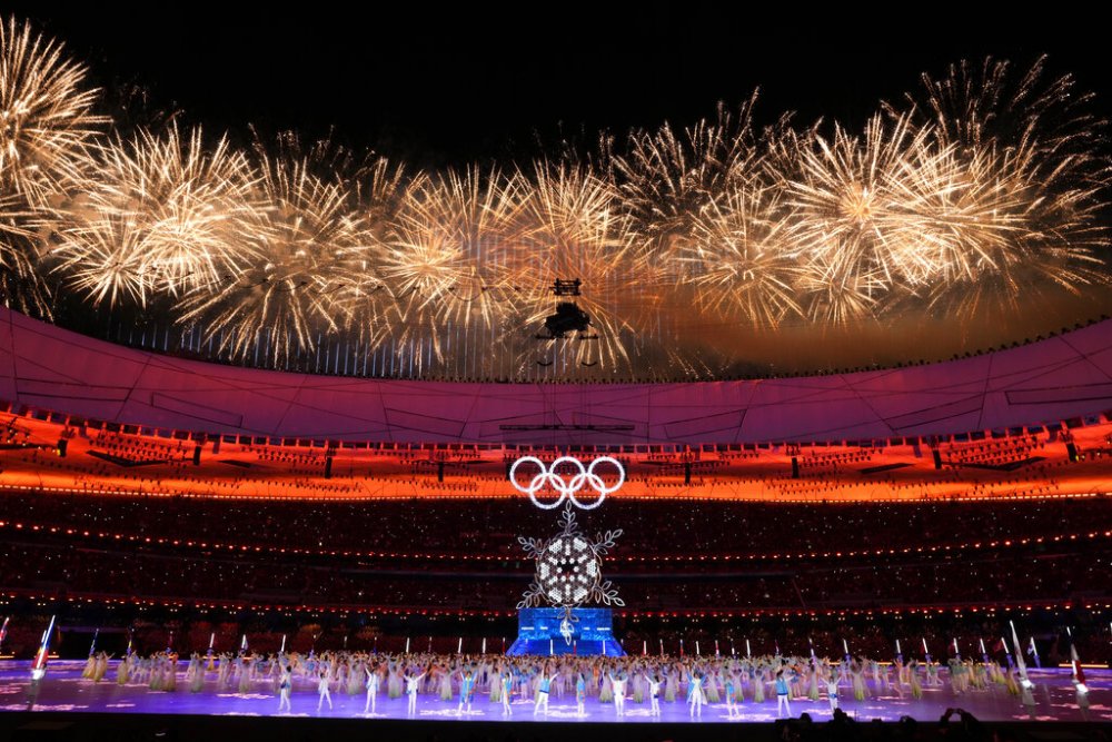 國際奧委會主席巴赫最終宣布北京冬奧結束。他還在講話中讚揚,北京冬奧是真正無與倫比的冬奧會,並祝賀中國成為冰雪運動大國。圖:視覺中國、美聯社